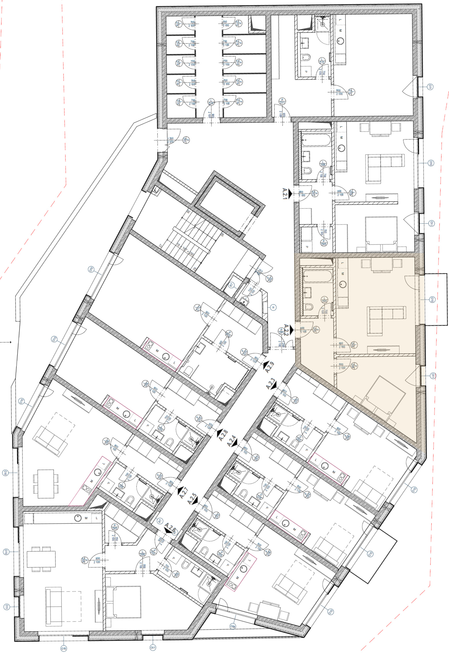 Dispoziční řešení 2+kk je navrženo s důrazem na efektivní využití prostoru, dostatek úložných kapacit a pohodlné zázemí jak pro vlastní pobyty, tak pro profesionální provoz ubytovacích služeb. Apartmán bude předán kompletně vybavený nábytkem a interiérovými prvky určenými pro hotelový provoz ve vysokém standardu 4–5.