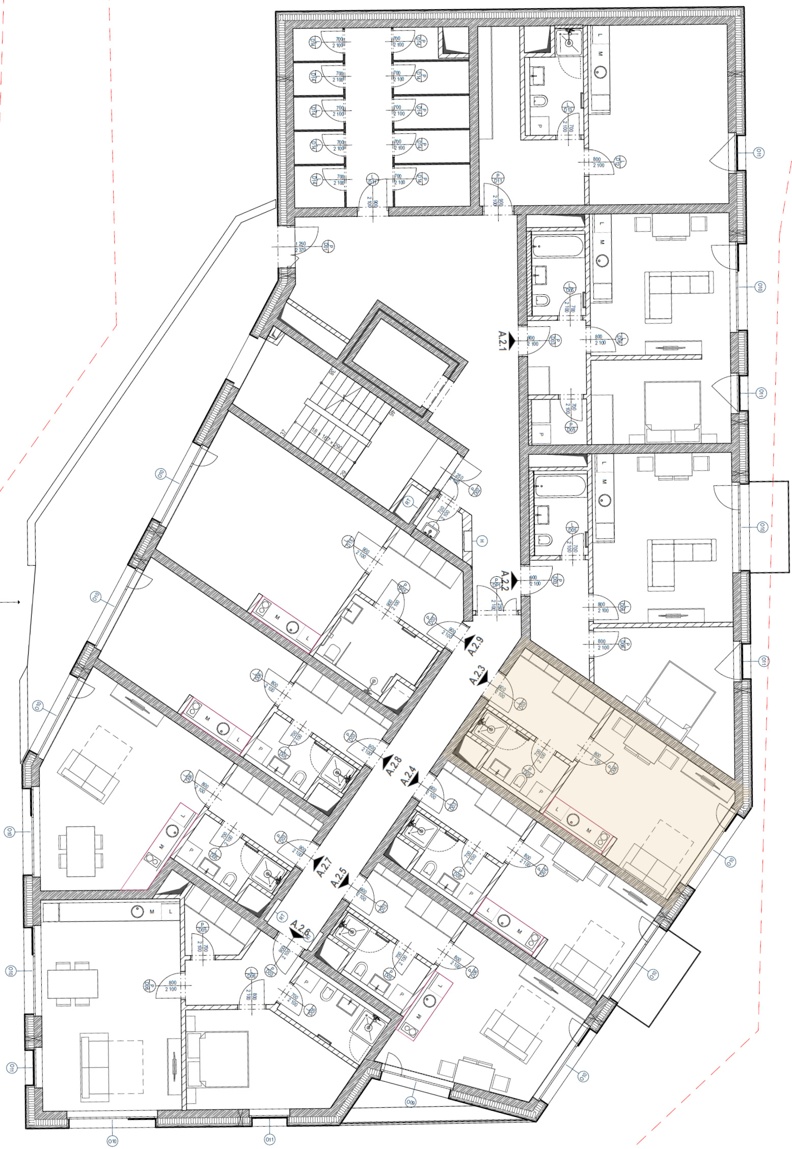 Dispoziční řešení 1+kk je navrženo s důrazem na efektivní využití prostoru, dostatek úložných kapacit a pohodlné zázemí jak pro vlastní pobyty, tak pro profesionální provoz ubytovacích služeb. Apartmán bude předán kompletně vybavený nábytkem a interiérovými prvky určenými pro hotelový provoz ve vysokém standardu 4–5.