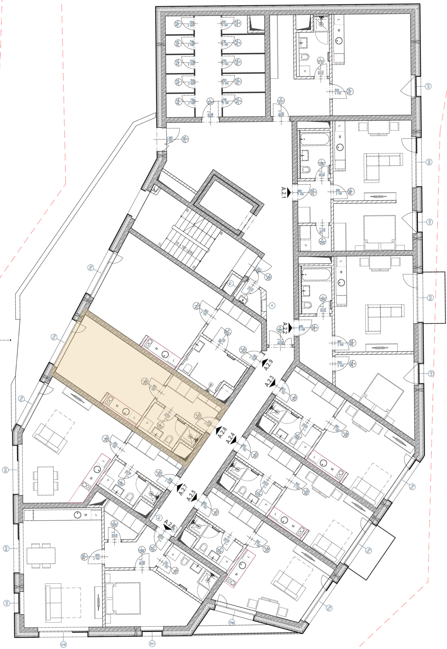 Dispoziční řešení 1+kk je navrženo s důrazem na efektivní využití prostoru, dostatek úložných kapacit a pohodlné zázemí jak pro vlastní pobyty, tak pro profesionální provoz ubytovacích služeb. Apartmán bude předán kompletně vybavený nábytkem a interiérovými prvky určenými pro hotelový provoz ve vysokém standardu 4–5.