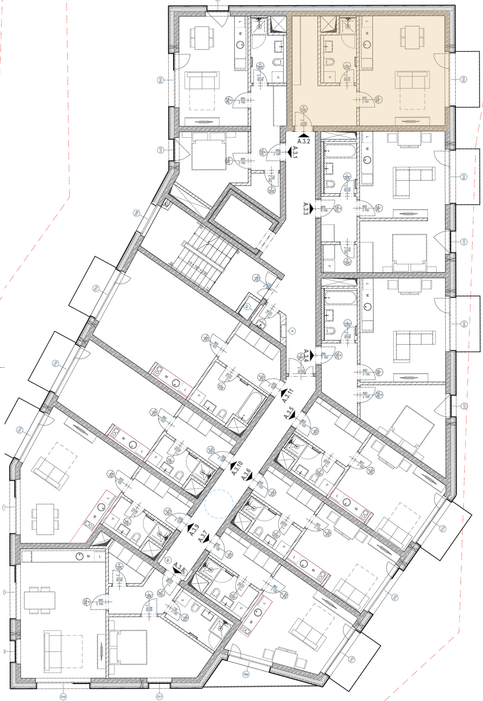 Apartmán A 3.02 je prakticky řešená prostorná