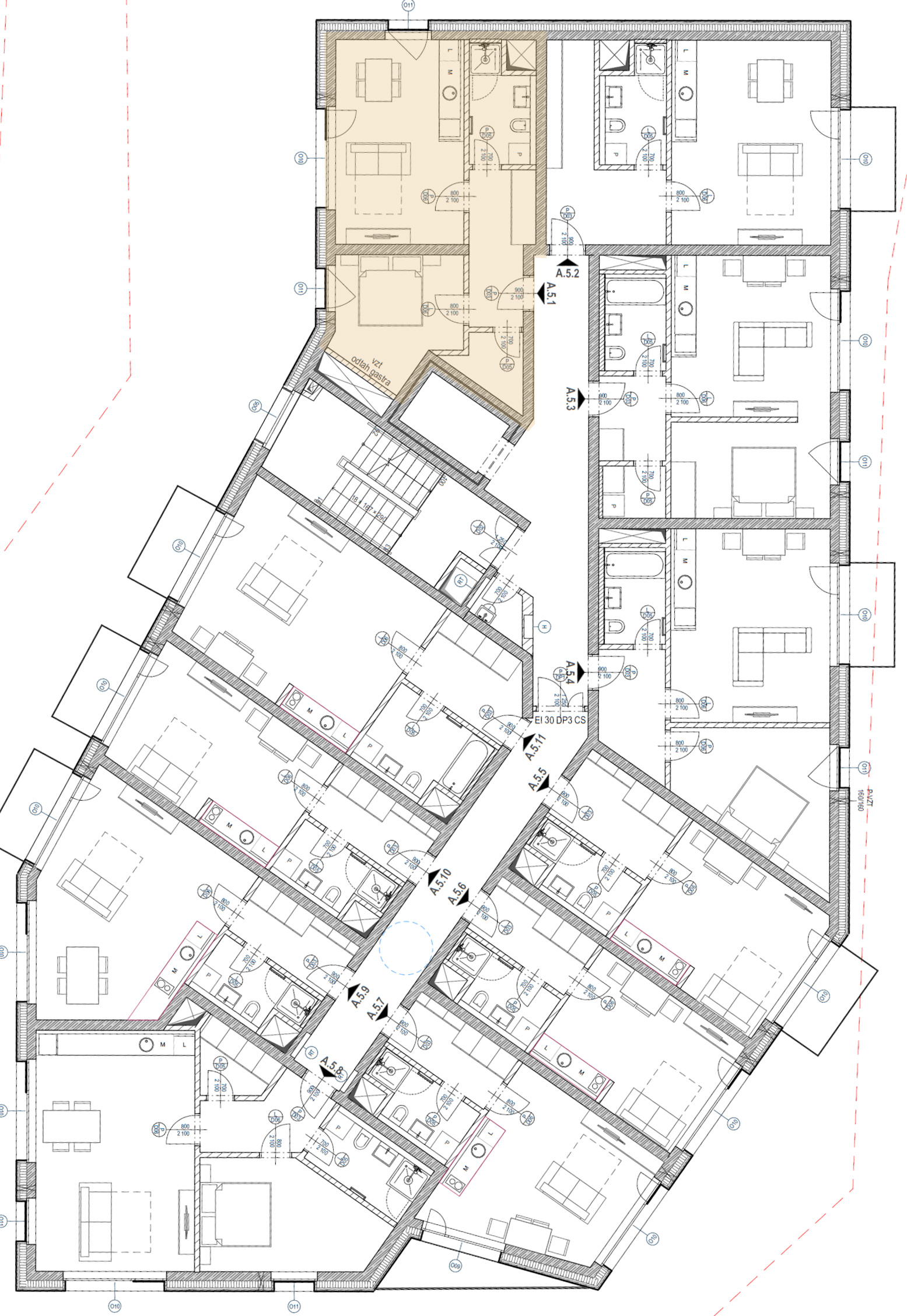 Apartmán A 5.01 je prakticky řešená prostorná