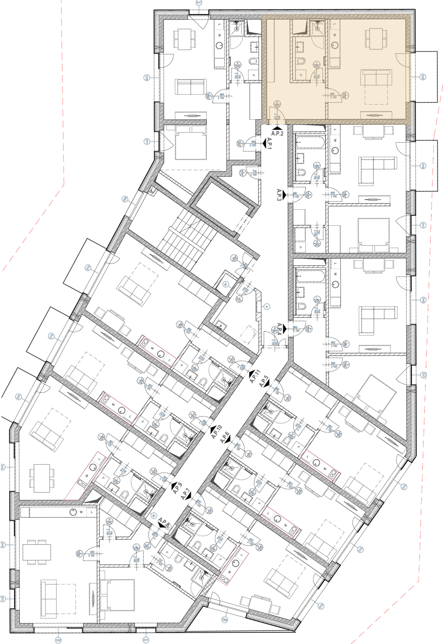 46,02 m², umístěná v 6. nadzemním podlaží (5. patře) budovy