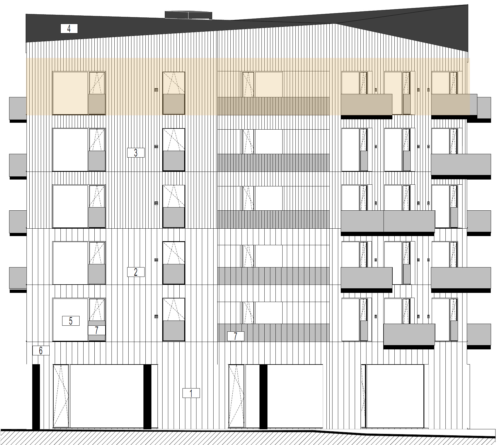 Díky západní orientaci oken nabízí apartmán dlouhé odpolední světlo a přímý vizuální kontakt s vnitřním náměstím, což podtrhuje jeho horský charakter i bezprostřední propojení s lyžařským areálem. Poloha jednotky zároveň umožňuje využít maximálního klidu, protože není orientována do ulice.