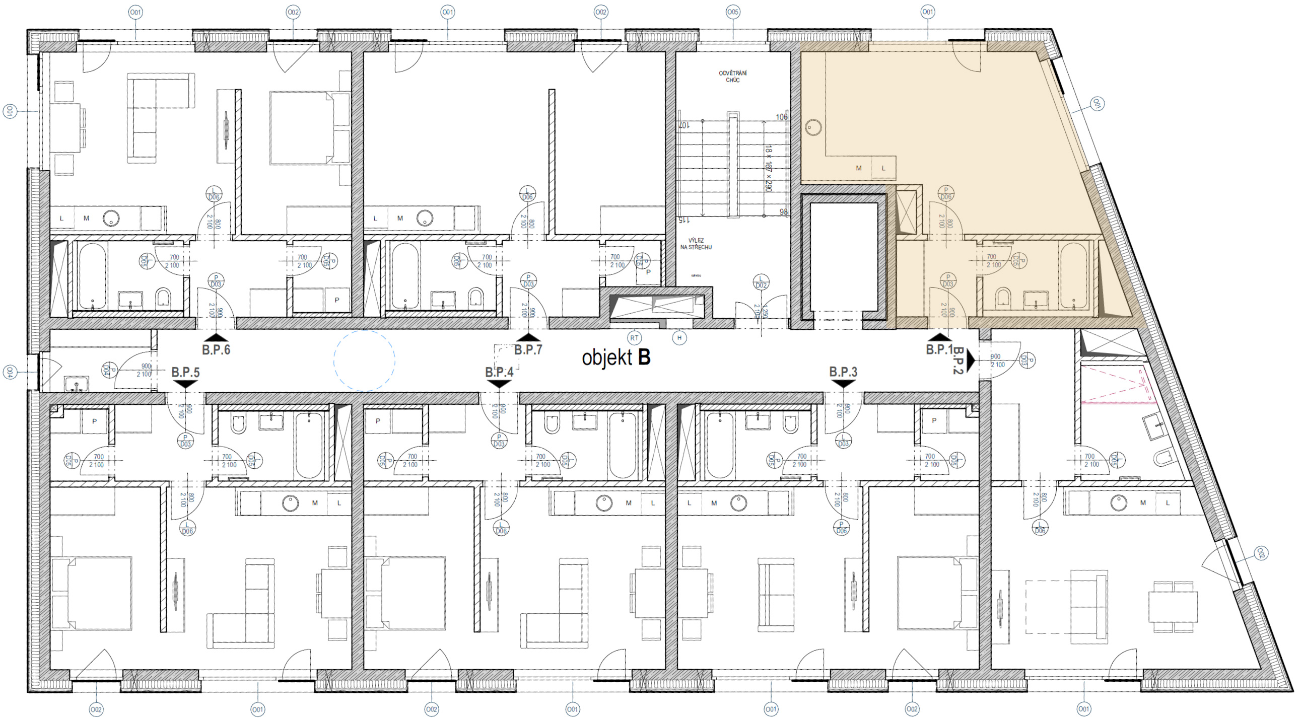 Podkrovní ateliér B P.01 je účelně navržená jednotka o dispozici 1+kk a celkové výměře 37,64 m², umístěná ve 5. nadzemním podlaží (4. patře) budovy B v rámci projektu Rezidence Pod Portáškami.