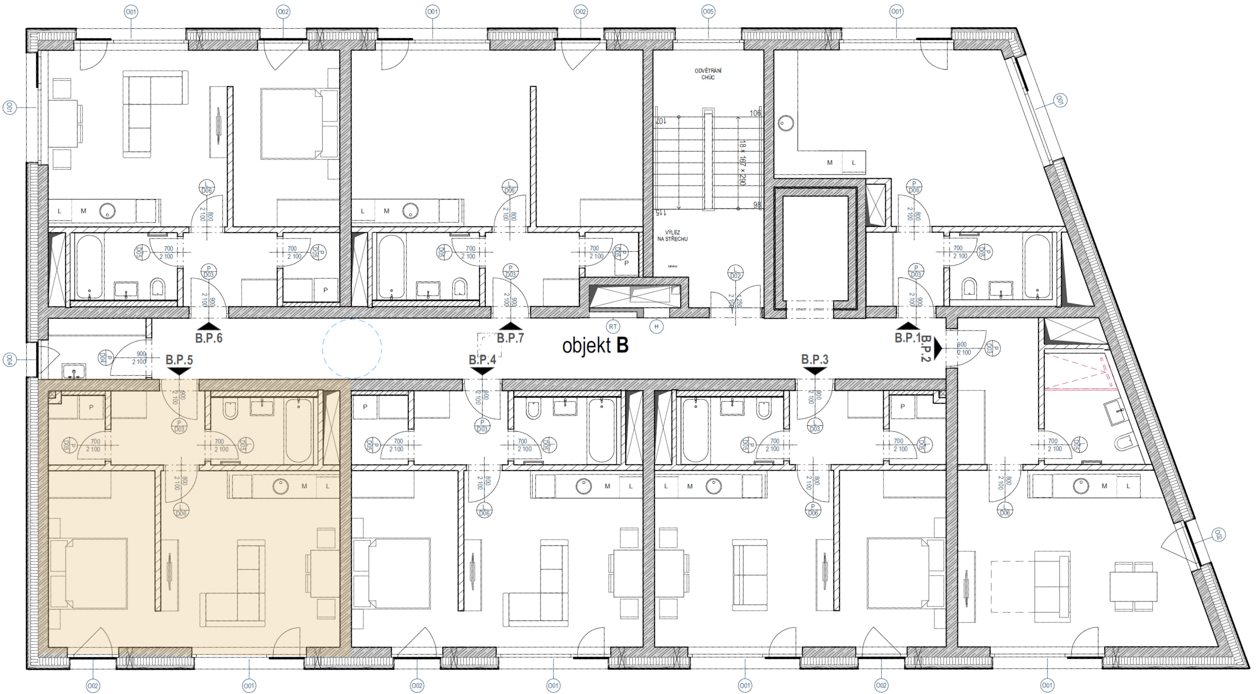 Podkrovní apartmán B P.05 je účelně navržená jednotka o dispozici 1+kk a celkové výměře 48,07 m², umístěná ve 5. nadzemním podlaží (4. patře) budovy B v rámci projektu Rezidence Pod Portáškami.