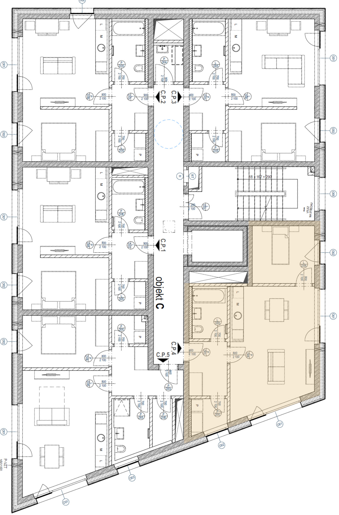 Podkrovní apartmán C P.04 je funkčně řešená jednotka o dispozici 2+kk a celkové výměře 53,22 m², umístěná ve 5. nadzemním podlaží (4. patře) budovy C v rámci projektu Rezidence Pod Portáškami.