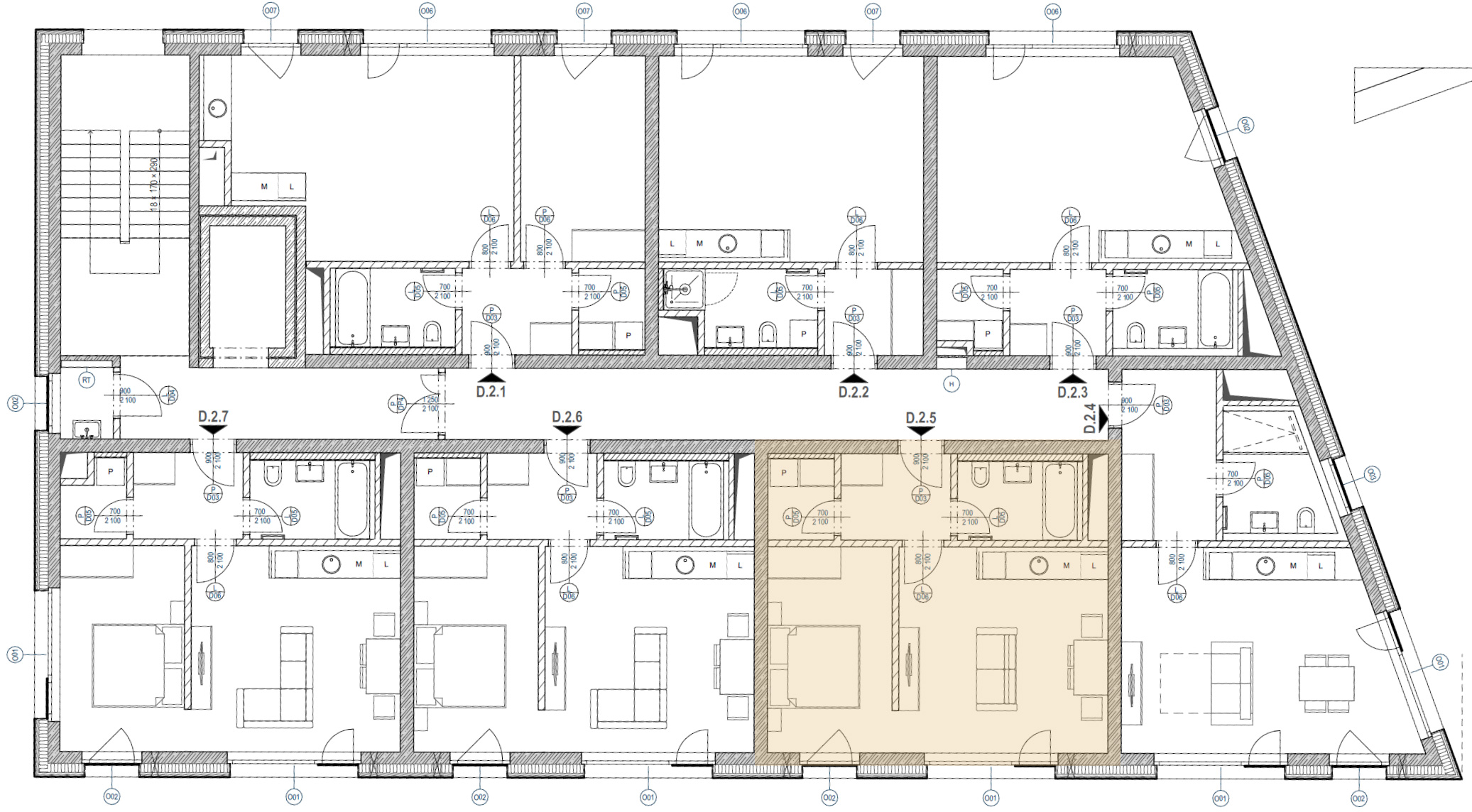 Budova D je součástí hlavní uliční fronty rezidenčního souboru a nachází se mezi budovami C a E. Svým urbanistickým i architektonickým řešením velmi úzce navazuje na budovu B, se kterou sdílí obdobný charakter i proporce. Nabízí tak vyvážený poměr mezi dostupností centrální části areálu a klidným rezidenčním prostředím horského bydlení.