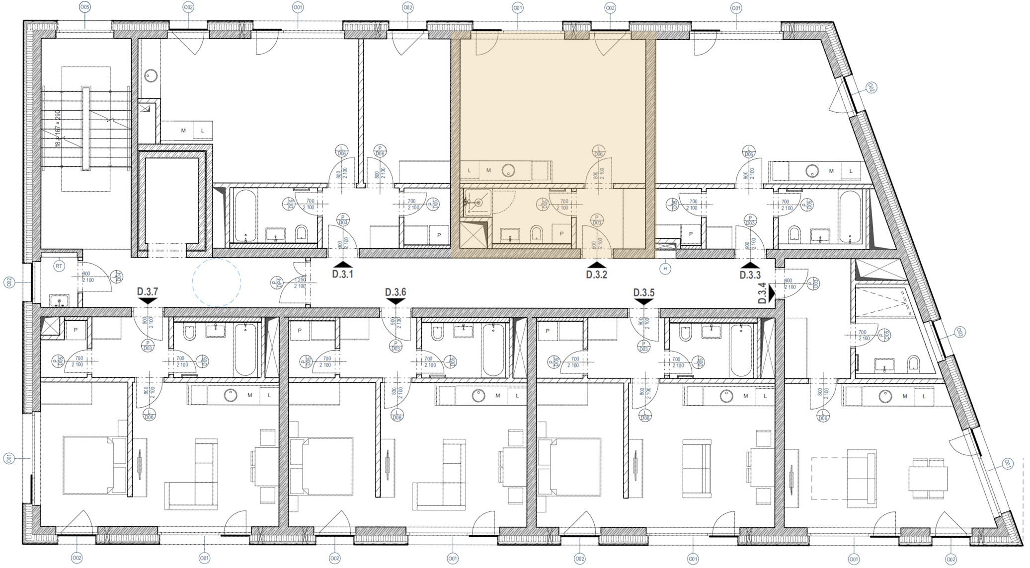 Ateliér D 3.02 je účelně navržená kompaktní jednotka o dispozici 1+kk a celkové výměře 37,46 m², umístěná v 3. nadzemním podlaží (2. patře) budovy D v rámci projektu Rezidence Pod Portáškami.