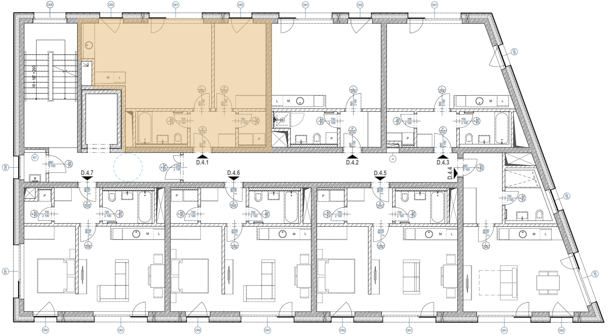 Apartmán bude předán kompletně vybavený nábytkem, kuchyňským koutem a interiérovými prvky v jednotném stylu projektu, určenými pro profesionální ubytovací provoz. Použité materiály a technické řešení odpovídají standardu 4–5★, s důrazem na dlouhodobou odolnost, snadnou údržbu a provozní efektivitu.