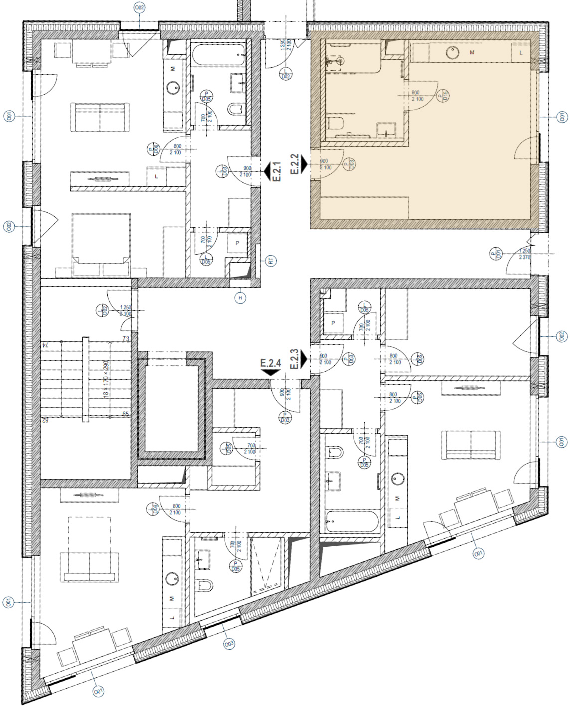 Ateliér E 2.02 je jednoduchá jednotka o dispozici 1+kk a celkové výměře 36,13 m², umístěná ve 2. nadzemním podlaží (1. patře) budovy E projektu Rezidence Pod Portáškami.