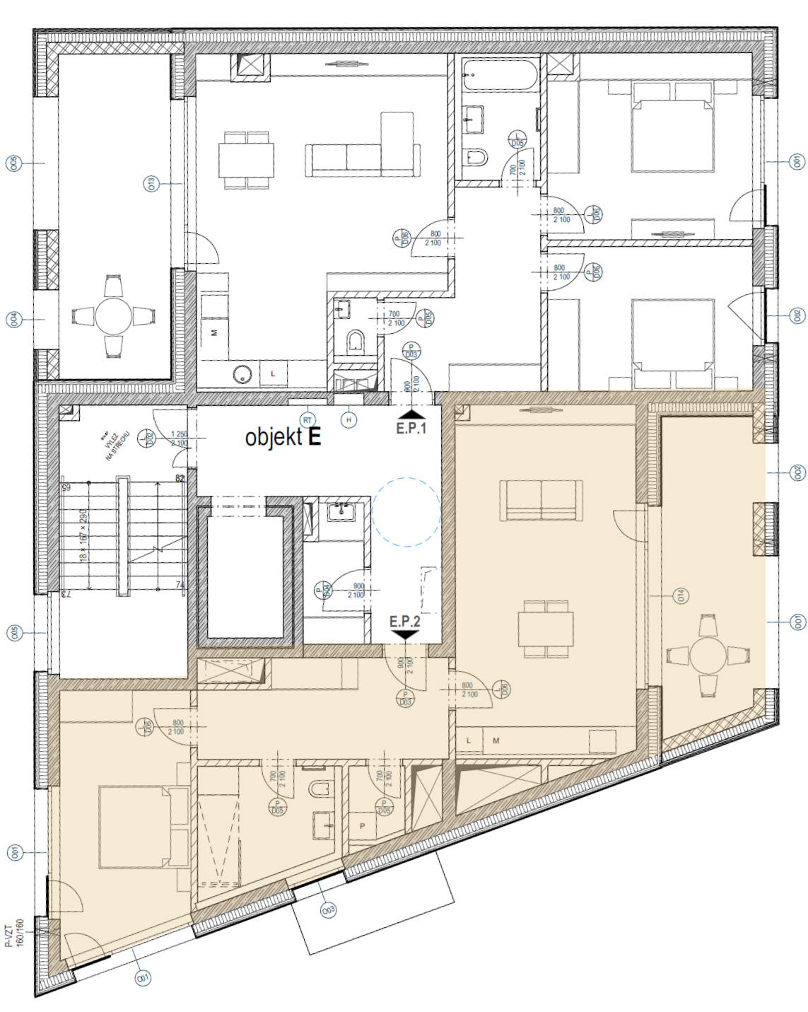Díky západní, jižní a východní orientaci oken a své pozici v nejvyšším patře budovy E získává apartmán přirozené nepřetržité denní světlo a vizuální kontakt s okolní horskou krajinou a svahem, případně s klidnější částí rezidenčního areálu. Poloha jednotky umožňuje vnímat charakter horského prostředí bez přímého kontaktu s ruchem veřejných prostor, což ocení jak vlastníci při rekreačním pobytu, tak hosté hledající klidnější typ ubytování.