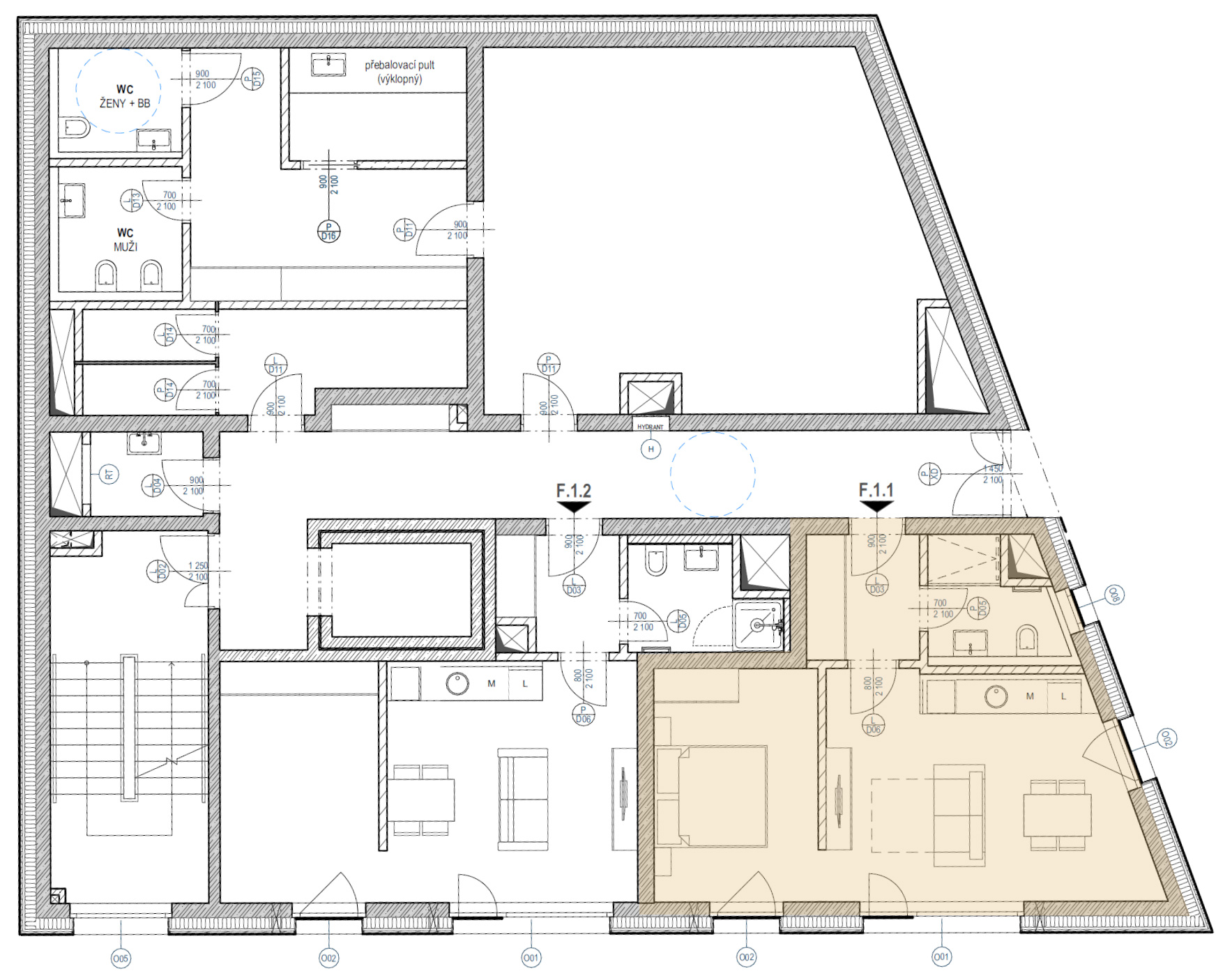 Apartmán F 1.01 je prostorná jednotka s dispozičním