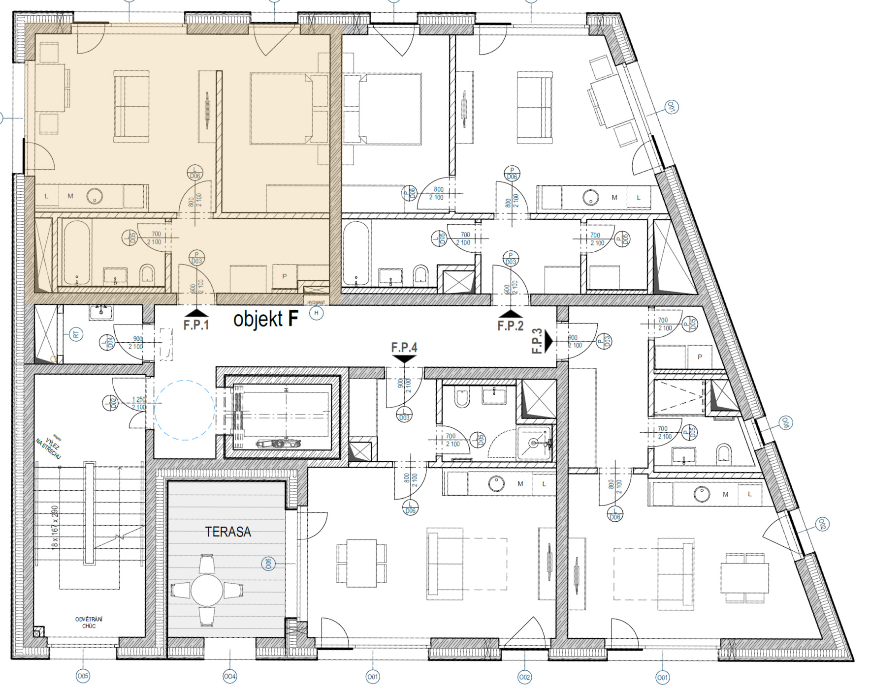 Apartmán F P.01 je prostorná podkrovní jednotka