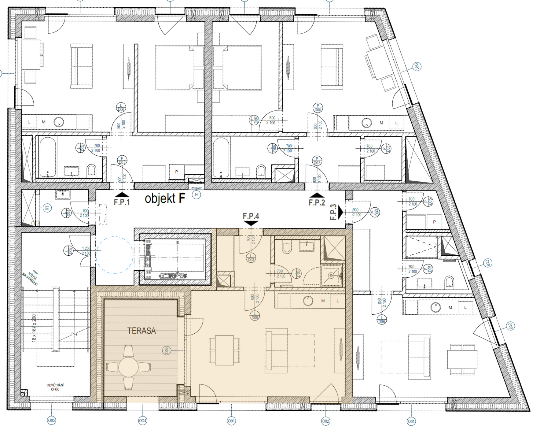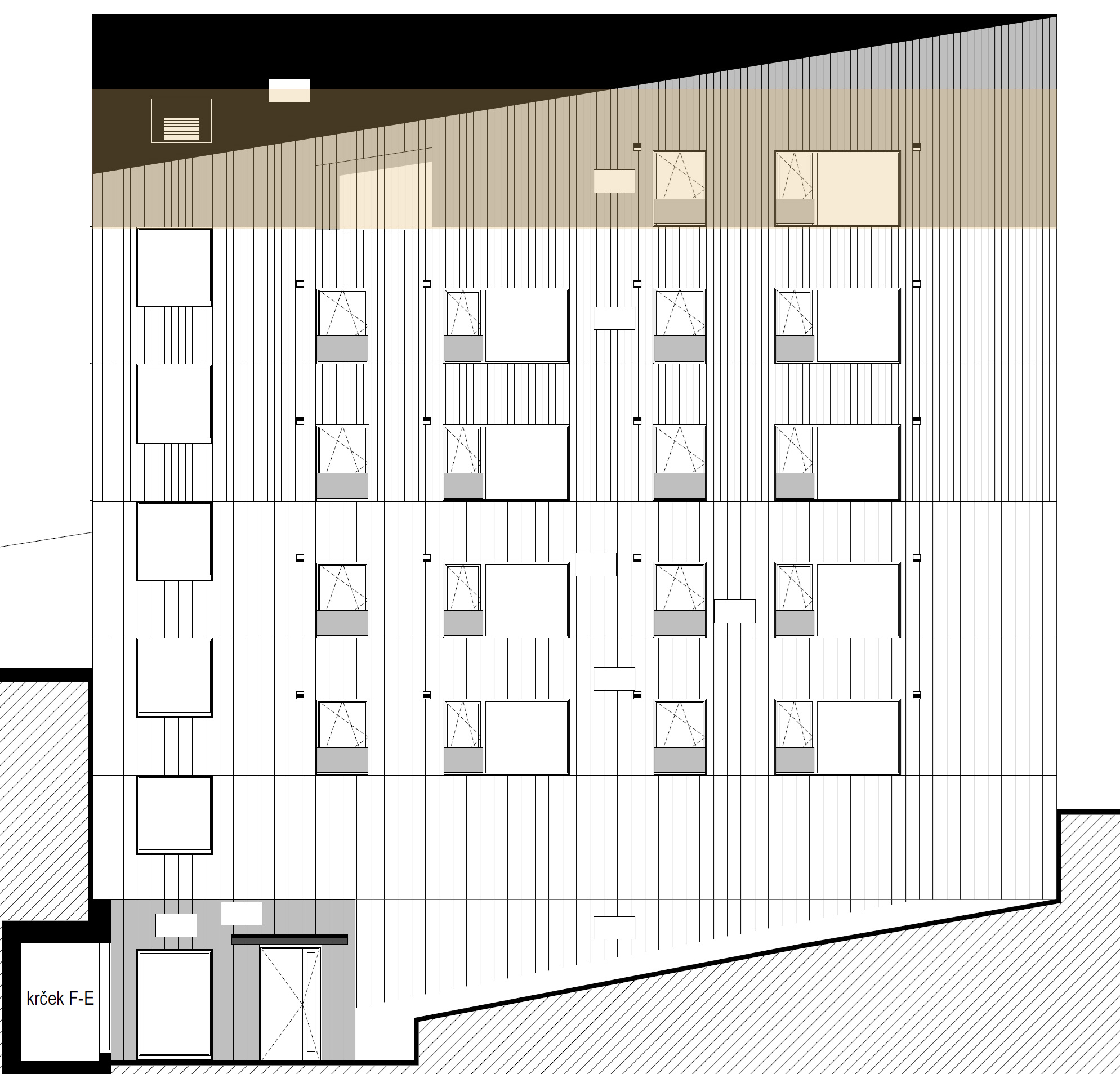 v nejvyšším 5. nadzemním podlaží (4. patře) budovy F